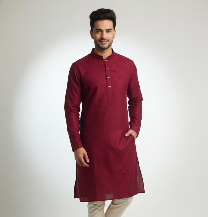 Premium Maroon Color Men’s Punjabi